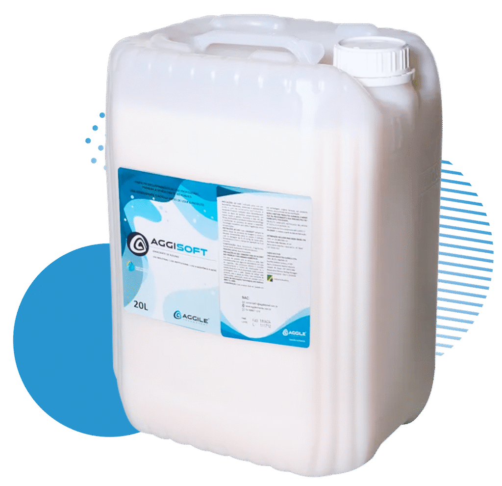 AGGISOFT – Amaciante profissional ultra concentrado que desembaraça os tecidos e garante toque macio e sedoso. Com fragrâncias micro encapsuladas, libera um perfume agradável por mais tempo, sem agentes agressivos, tornando a experiência ainda mais sofisticada. Além disso, reduz a umidade residual na centrífuga, facilitando o processo de passadoria e calandragem.